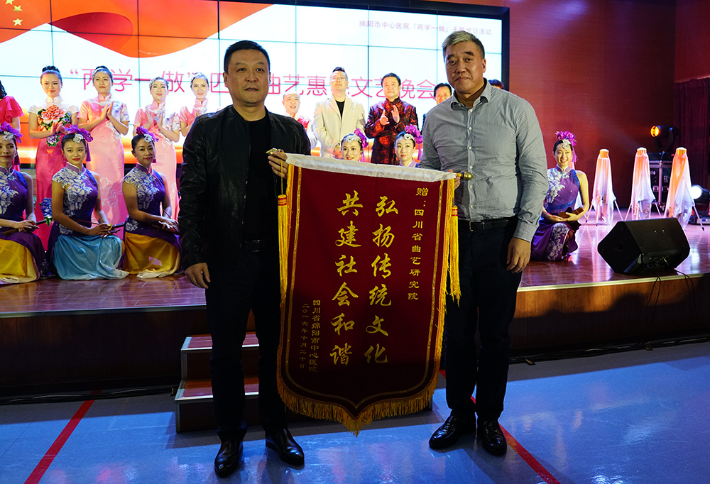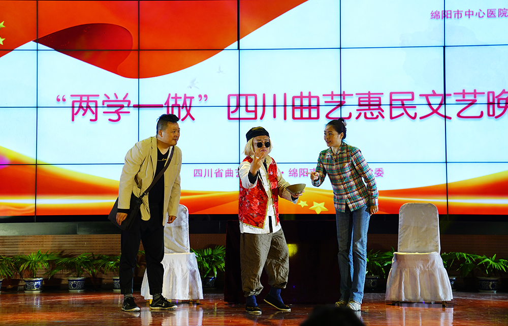 为响应省文化厅的号召,我院开展的“两学一做·四川曲艺惠民文艺晚会”于2016年10月20日在沈军院长的带领下,赴绵阳市中心医院,为我们可敬的医务工作者带来了一场精彩的演出。